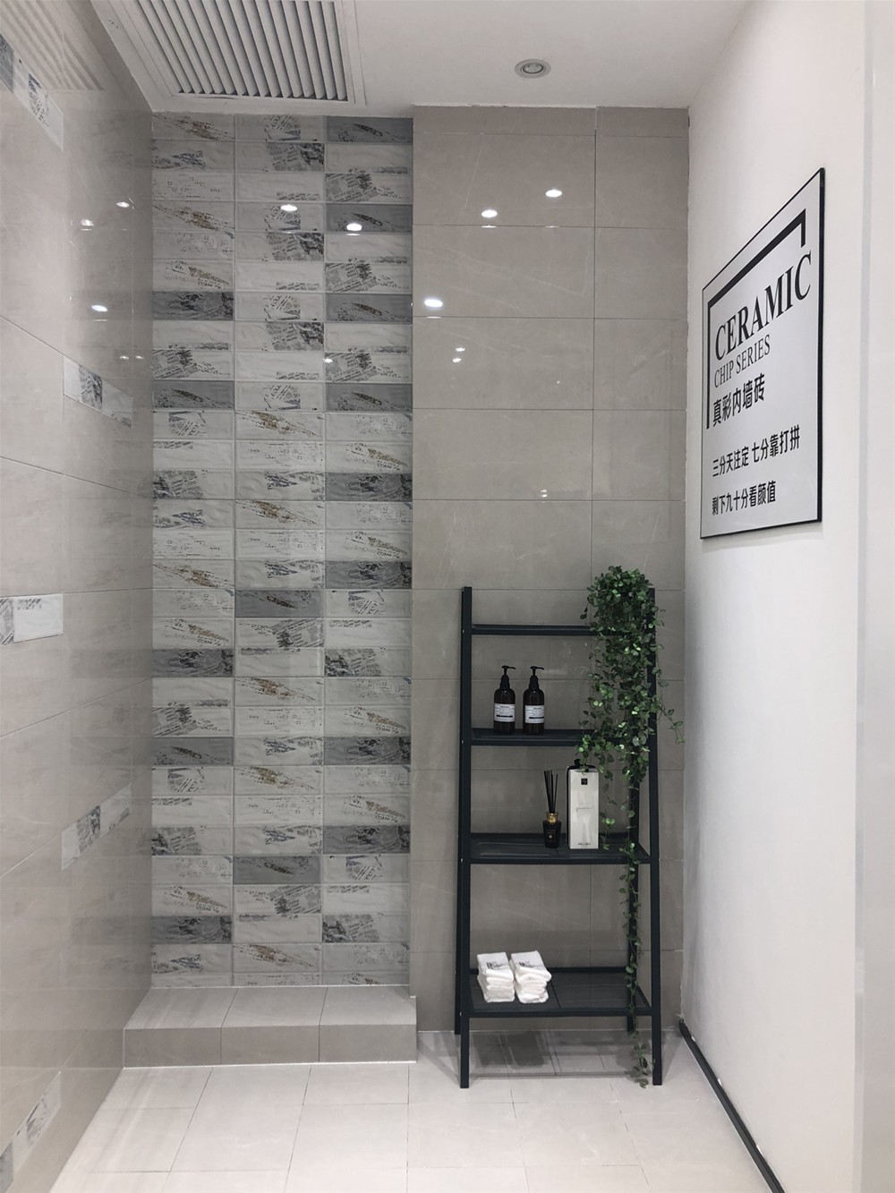 墙面可作电视背景墙、客厅地砖、沙发背景墙、厨卫用砖。高级灰亮面砖深受年轻人喜爱,也很好搭配突出空间效果。