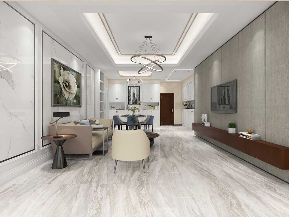 地面艾釉石KYP8091+波打线艾釉石KYB8017+墙面艾釉石KYP8118