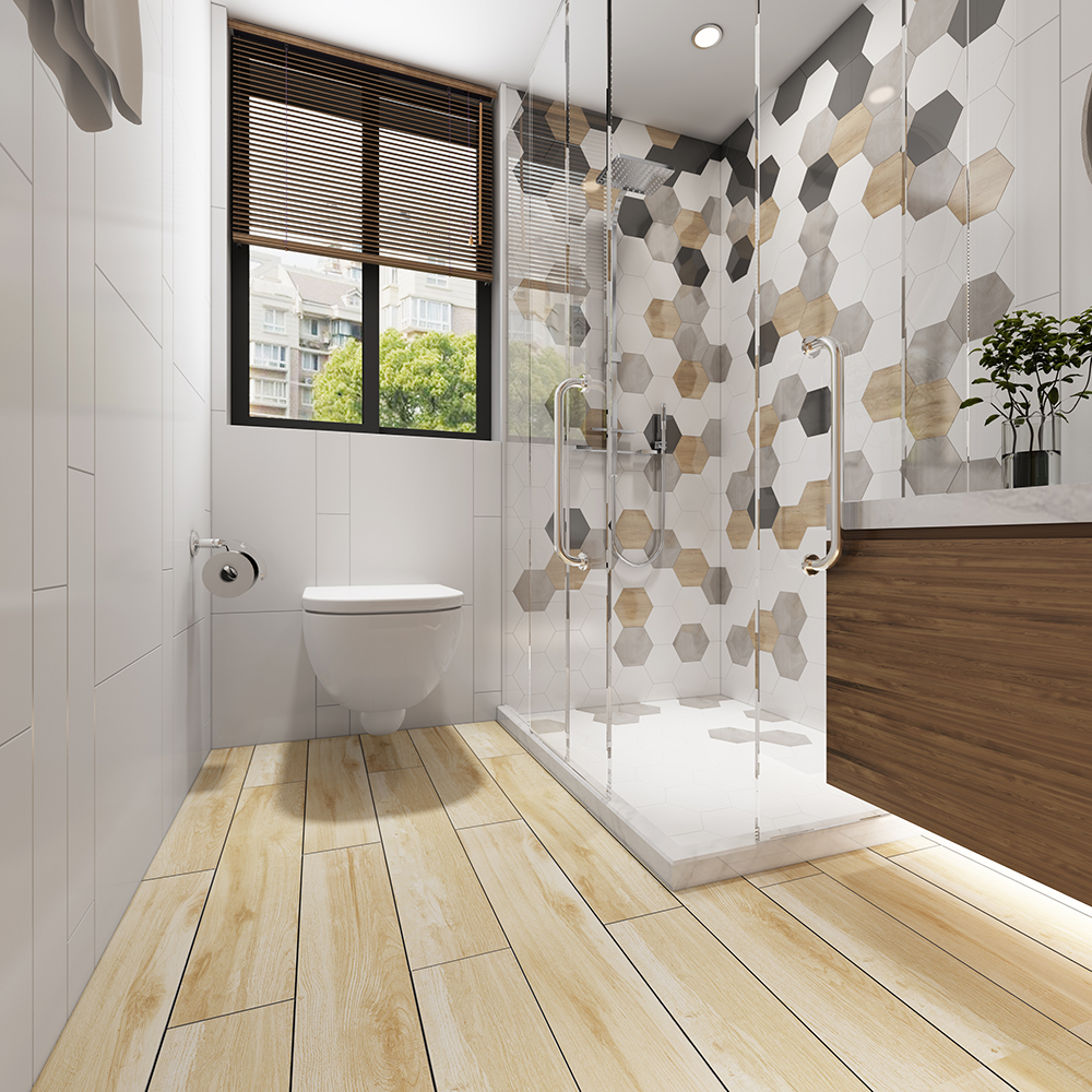 然而,谁说木纹砖只能铺卧室?金艾陶木纹条,客厅、餐厅、卫生间、阳台同样驾驭得美轮美奂。