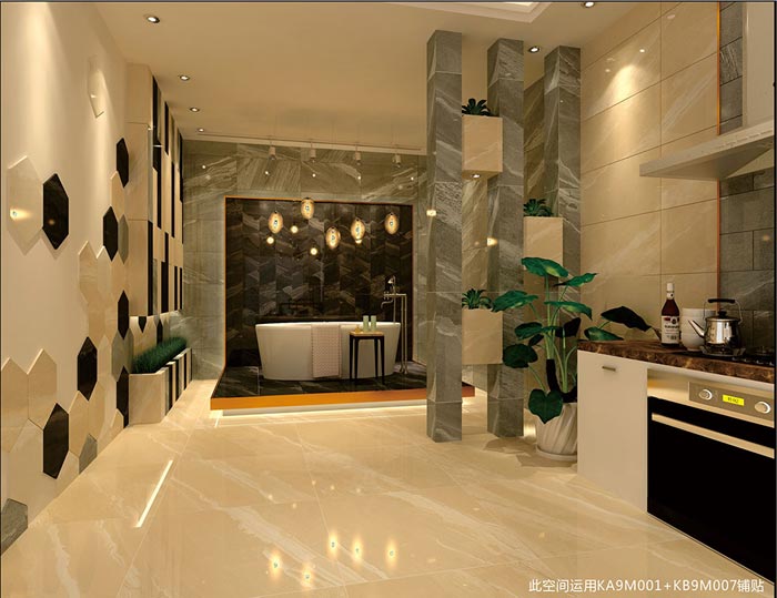 “我的世界,不止9面”,呈现出金艾陶瓷砖品牌9面通体大理石瓷砖百变的视觉效果,推动了通体大理石瓷砖在技术方面的革新,同时凭借着独特的设计设计溯源,重新定义通体大理石的形象,具有“洪荒之力”的跨时代意义。