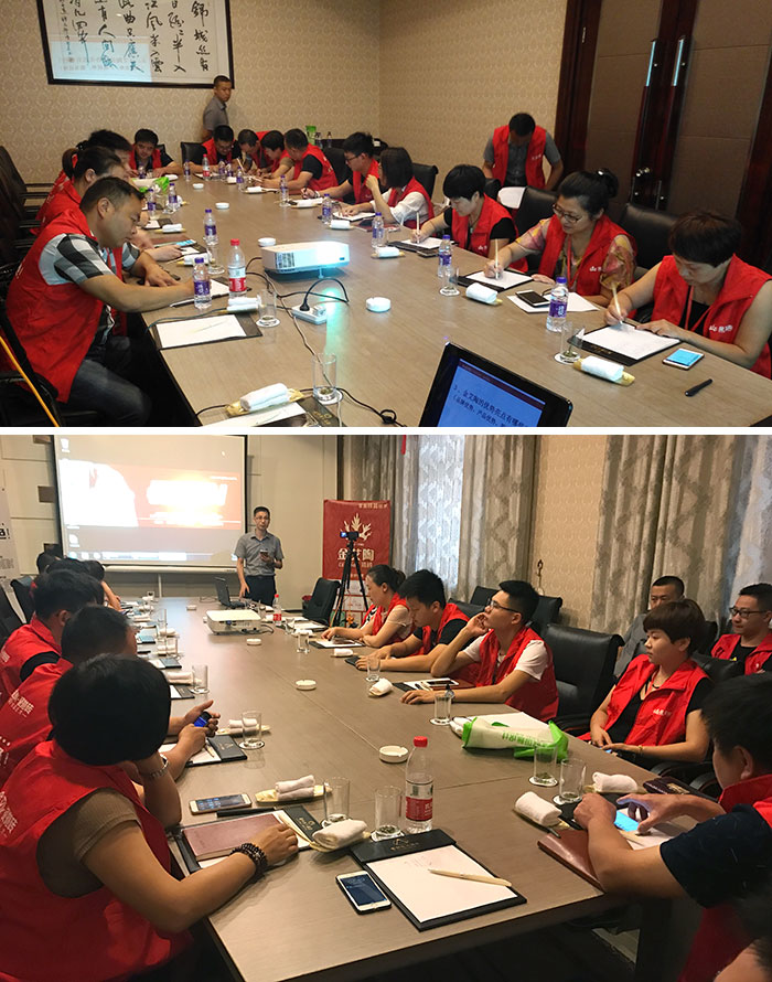 同时,与会人员进行了激烈的金艾陶产品类、获客、促单成交答辩赛。大家分组讨论,有专业人员对大家提出的问题进行解答。通过答辩赛,大家不仅深入的了解了金艾陶产品,也让自身的获客、促单能力更胜一筹,这不只是一场思想碰撞,更是一场精彩绝伦的实力比拼,在这次激烈的答辩中,参赛的学员们都收获颇丰。