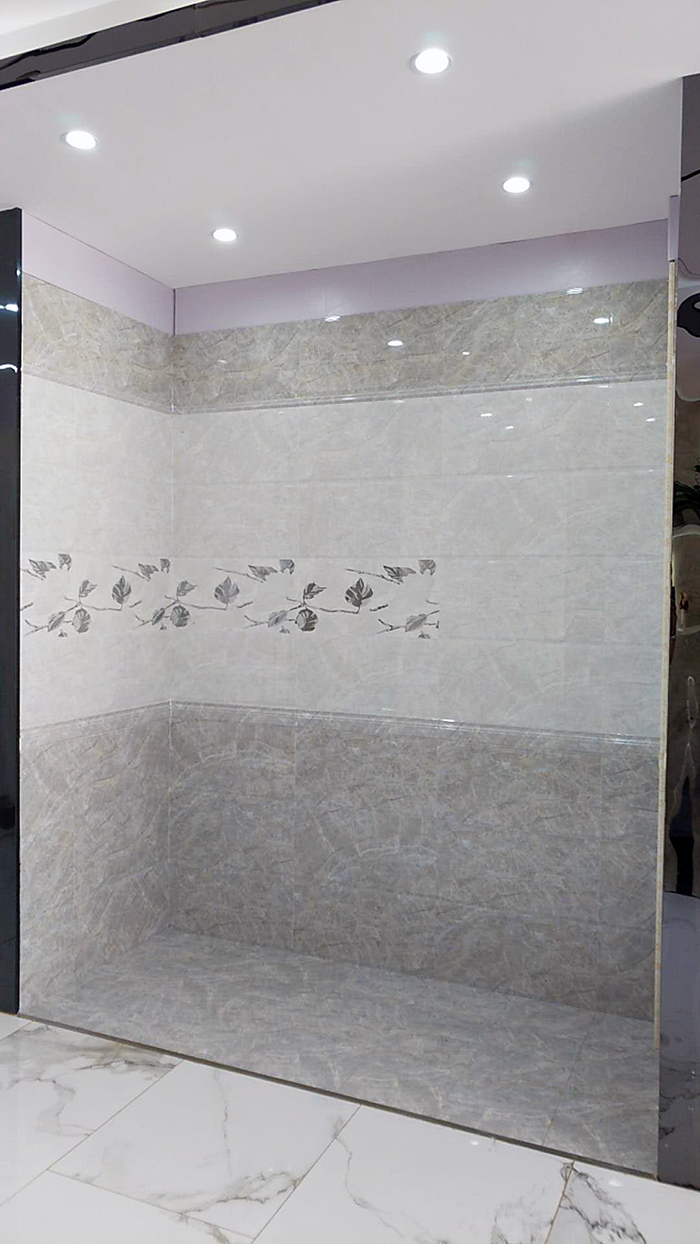 瓷片空间的铺贴效果往往和花片的搭配有很大关系,此空间的叶子花片,让整个空间多了几分色彩,不显单调。