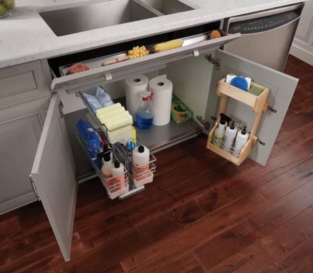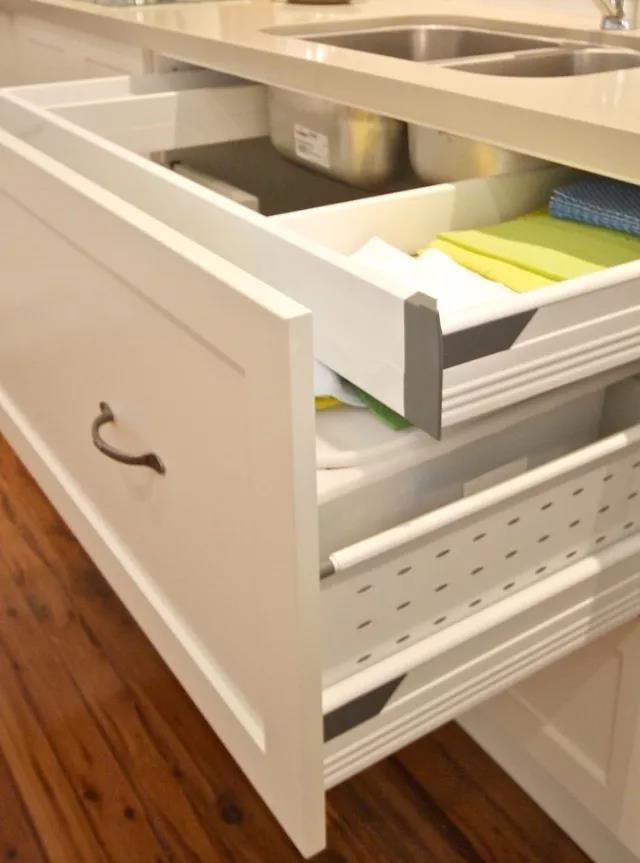 厨房空间不大,东西却不少,如果没有收纳好,加上油烟肆虐,厨房一定成了乌烟瘴气的地方,所以说,厨房装修首先考虑的问题是—收纳!