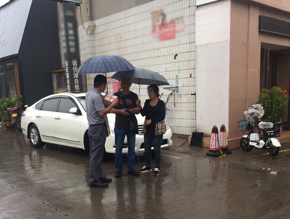 9月15日当天,金艾陶策划人员黄经理到达洛阳专卖店,与高经理一起带领河南洛阳全体店员到商场、步行街、卖场附近派发传单。即使是下着雨,也依然坚持撑着伞走过大街小巷,不放过任何一个机会,为金艾陶一线人员点赞,是你们的付出让这次开业取得卓越的成绩。