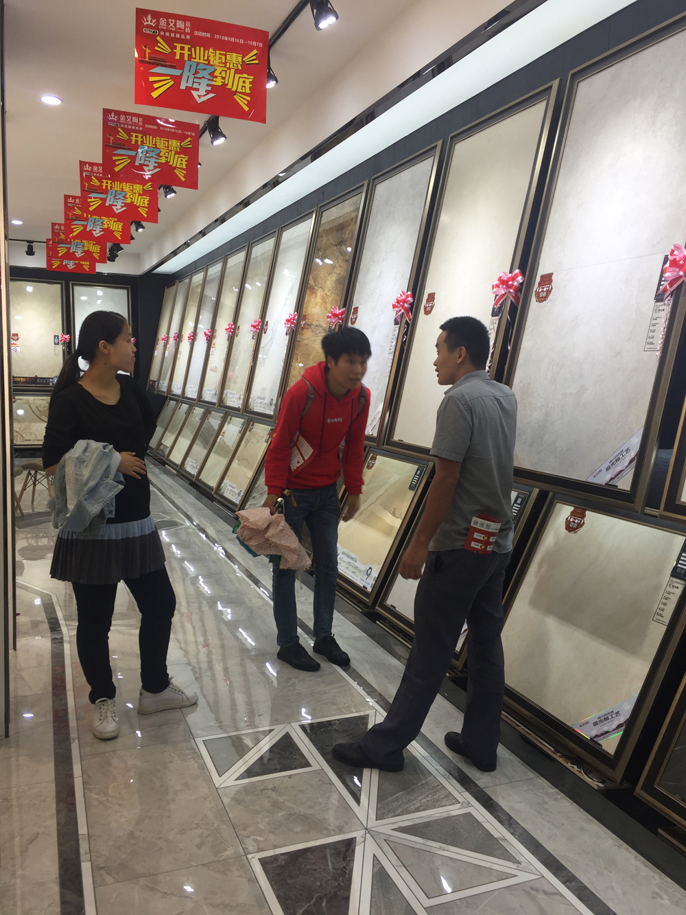 9月16日,金艾陶河南洛阳青春馆迎来了筹备已久的开业盛典。虽然开业这天伴着零星小雨,但也不减前来选购瓷砖客户的热情,下面就跟着陶瓷一线品牌金艾陶瓷砖小编来回顾活动的精彩部分吧!